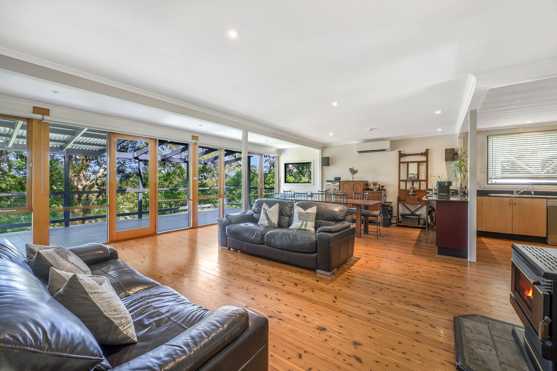 • Light filled living zone, RC Aircon and slow combustion fire